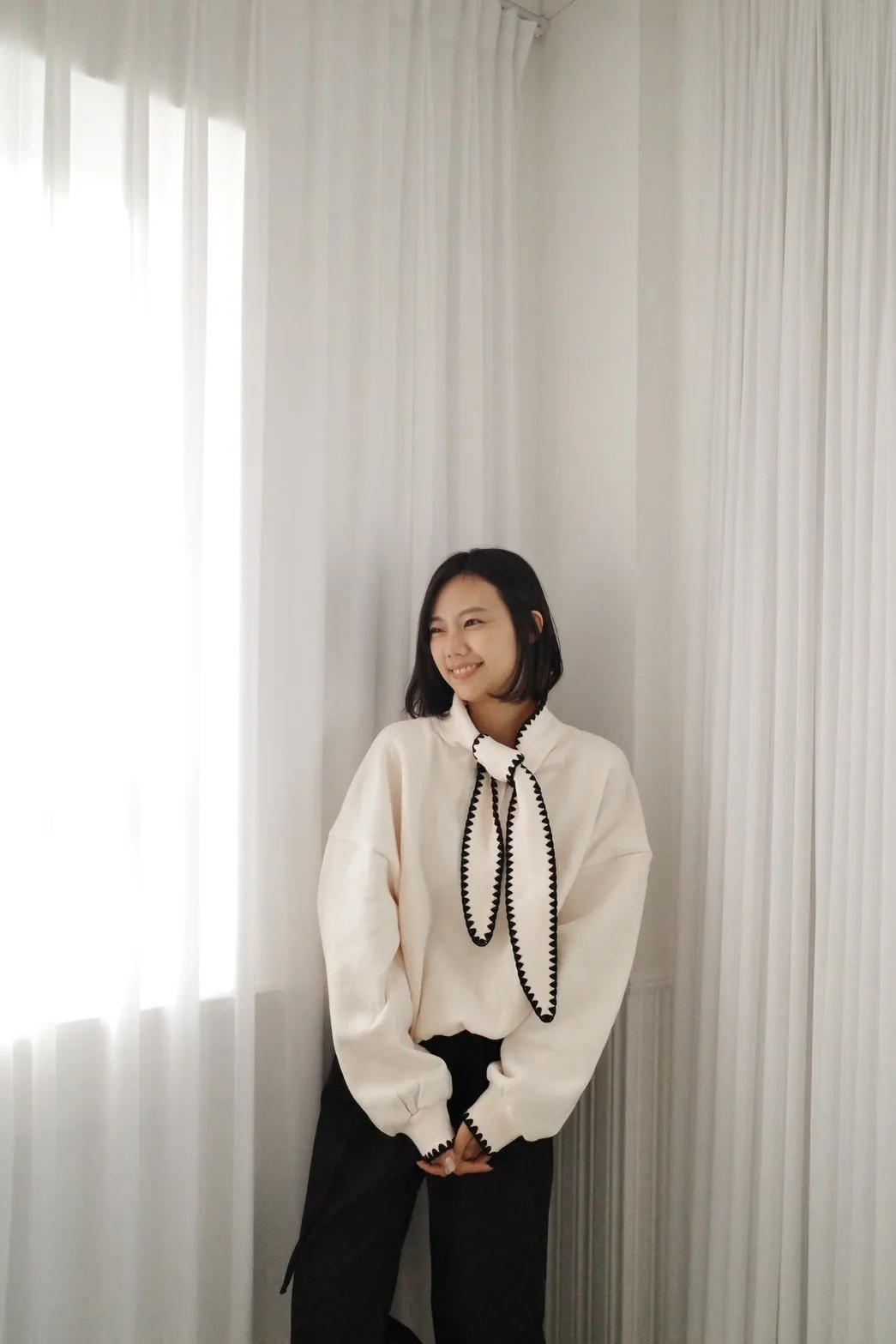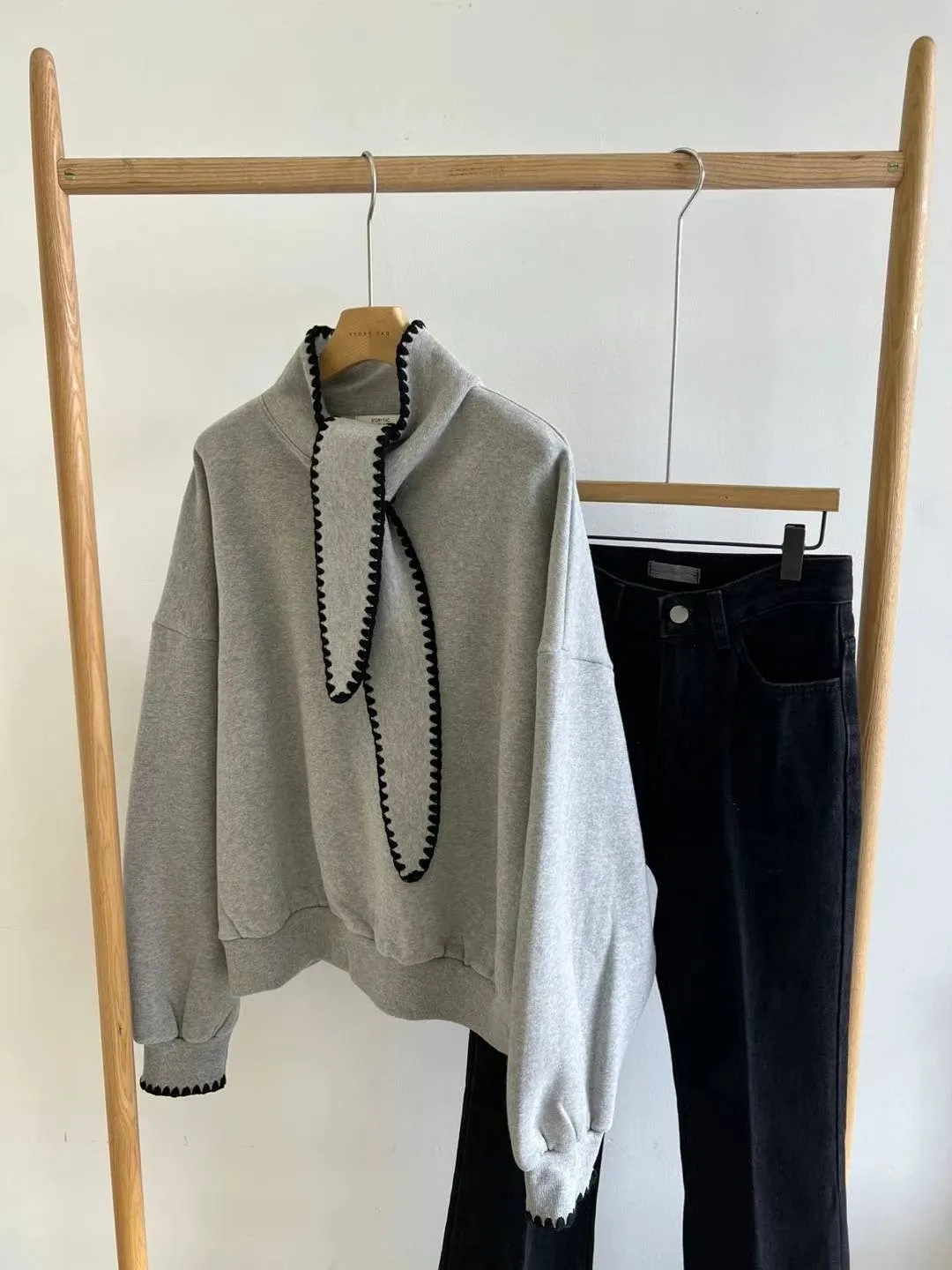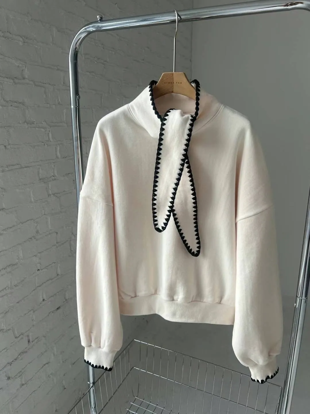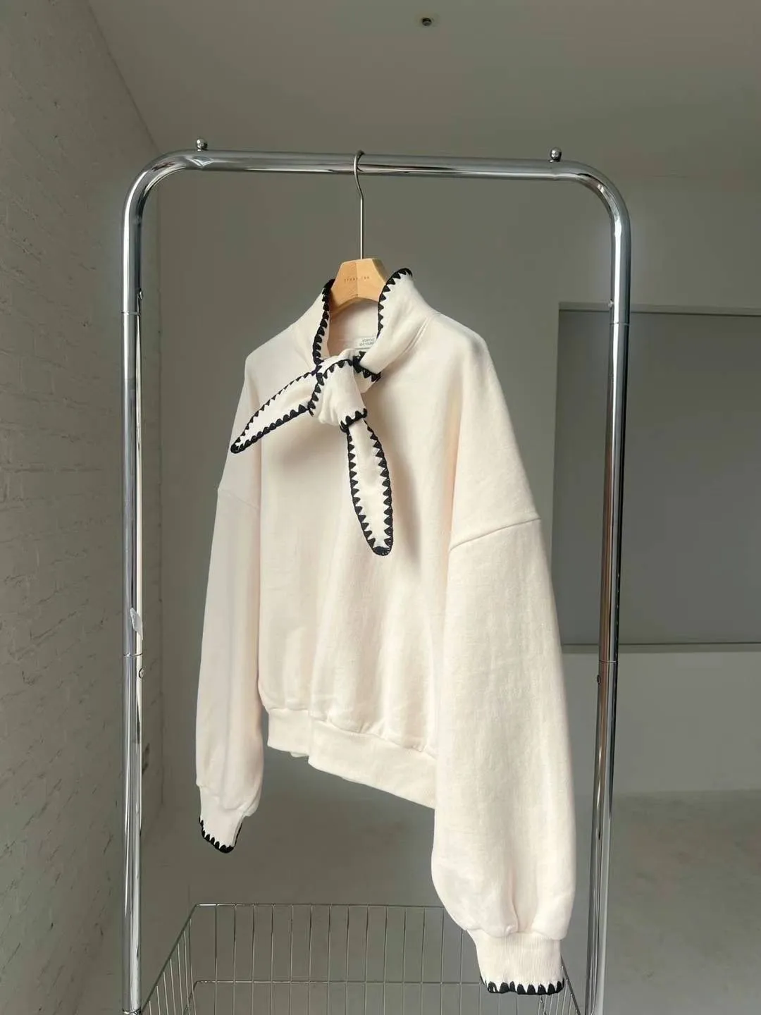 手工刺繡蝴蝶結綁帶衛衣-兩色