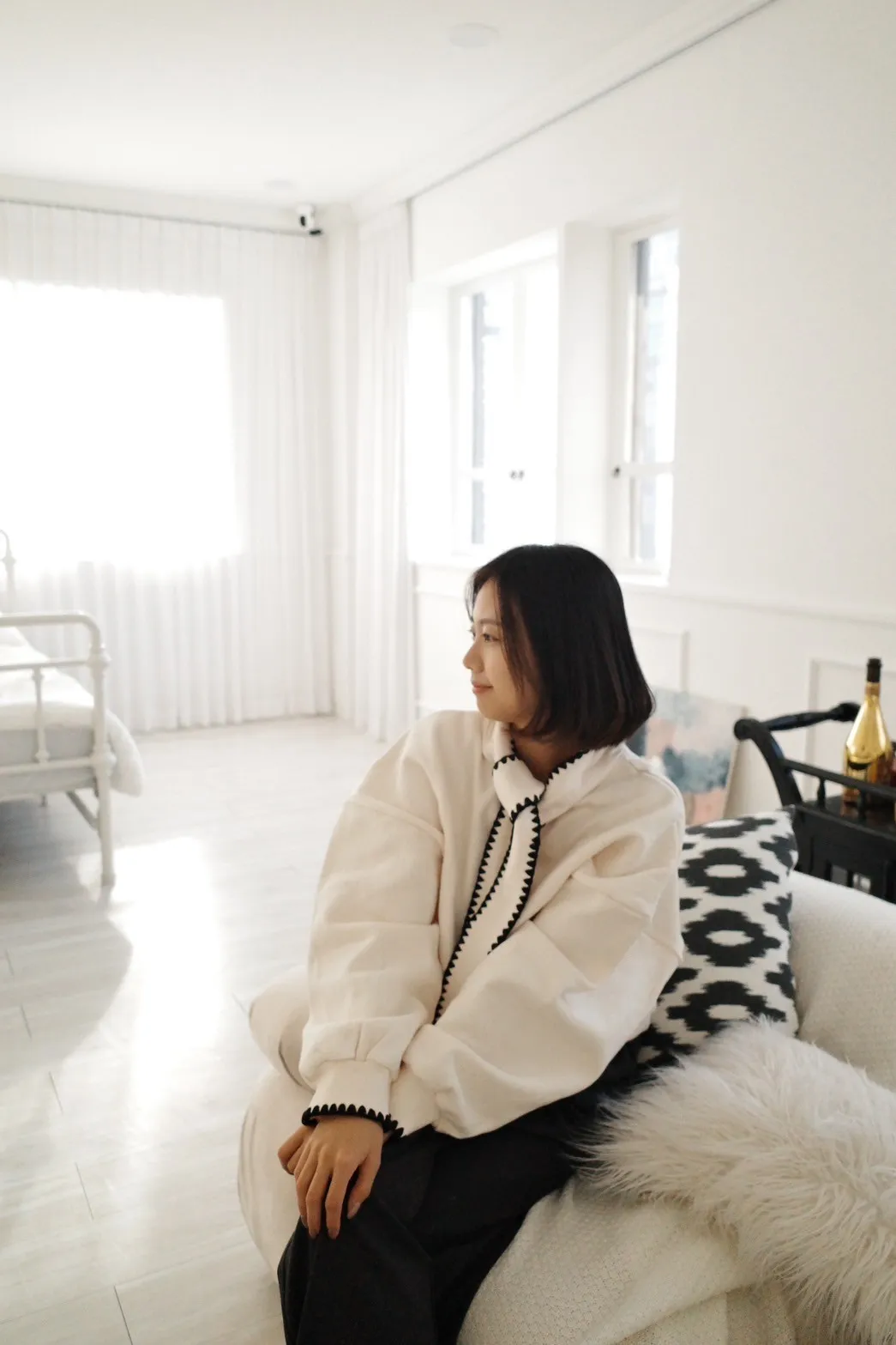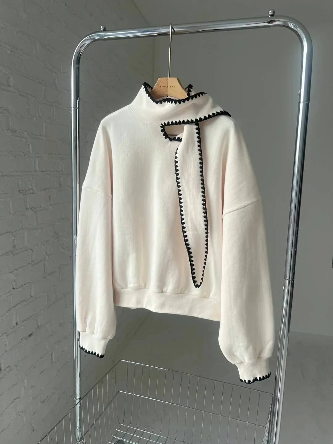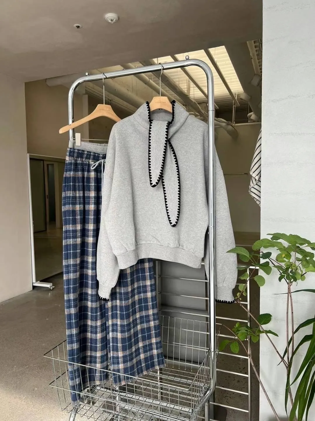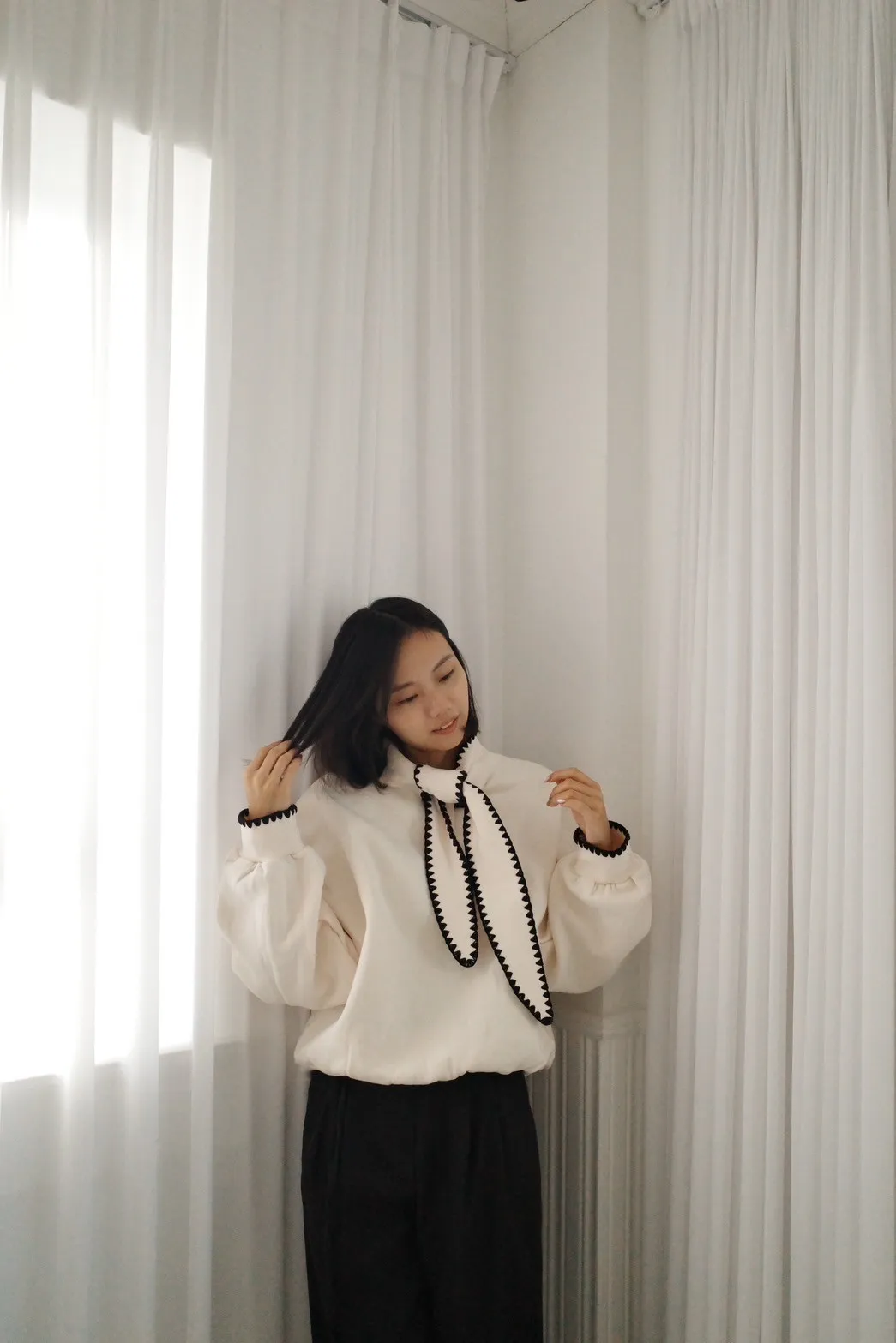 手工刺繡蝴蝶結綁帶衛衣-兩色