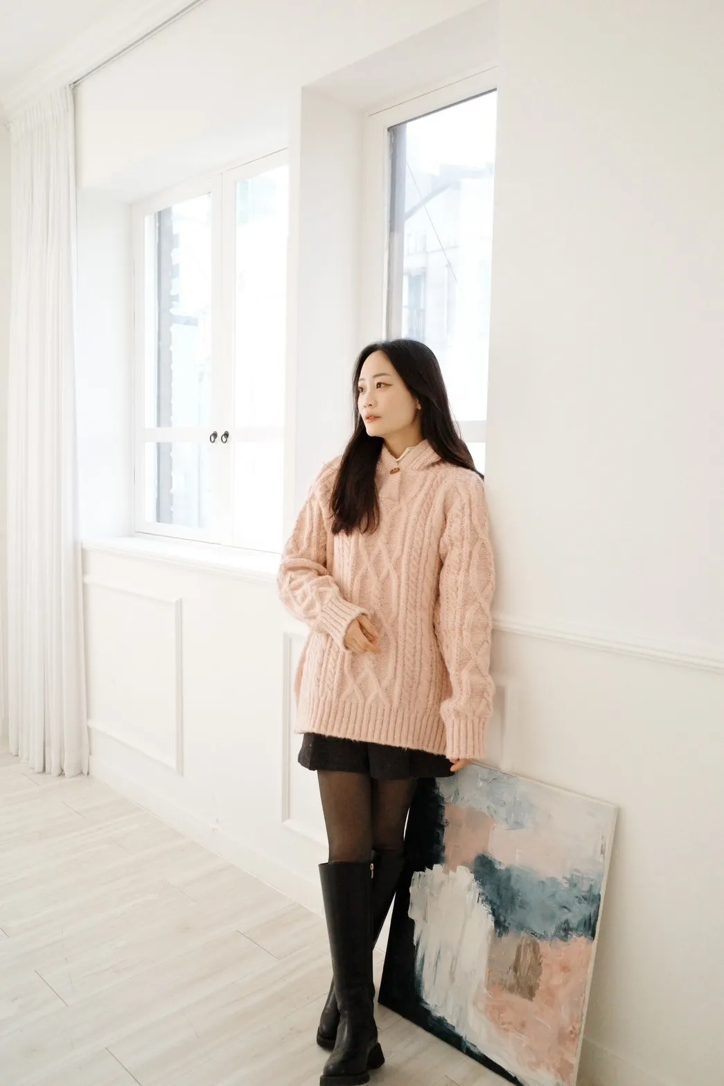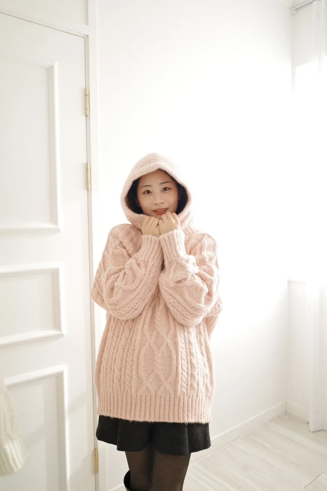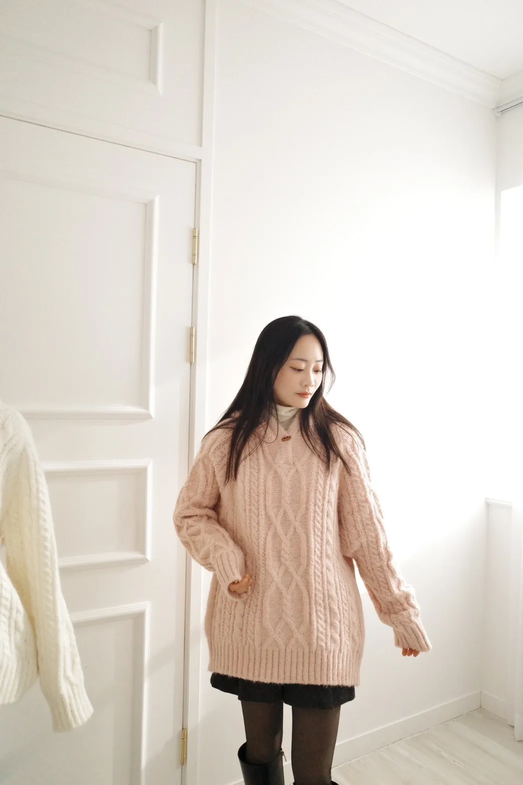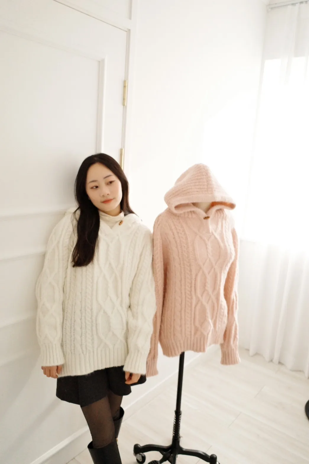 牛角釦針織連帽上衣-兩色